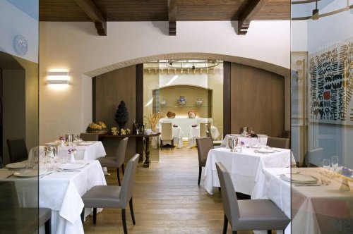 El restaurante, acogedor y privado, con techo con vigas a la vista, ofrece excelentes platos de la cocina local umbra preparados en función de los productos de temporada.