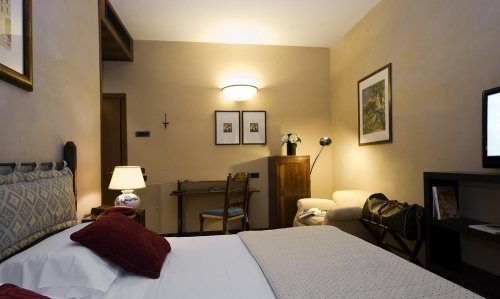 El resto de habitaciones se encuentra sobre el claustro del antiguo convento (las llamadas habitaciones del claustro) y están decoradas con muebles de estilo franciscano, con baño de mármol, madera y cerámica. Algunas de las habitaciones del claustro disponen de balcón.