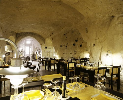 El restaurante dispone de salas-grutas y ofrece exquisitos platos de la cocina nacional y local. Además pone a disposición de los huéspedes los famosos vinos de la bodega-gruta.