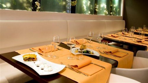 En el luminoso Ristorante NeroArancio es posible disfrutar de deliciosos croissants, tartas y platos salados.