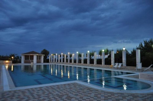 The facilities available include a lovely Olympic size swimming pool, a hot tub, a bar, a private beach 100m away, football fields, tennis courts, extensive parking, and a lovely panoramic restaurant with a view of the sea.