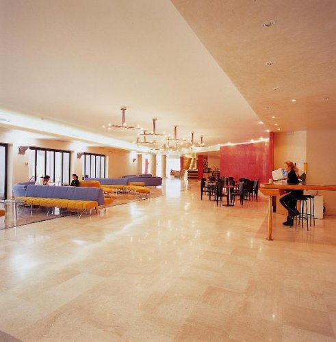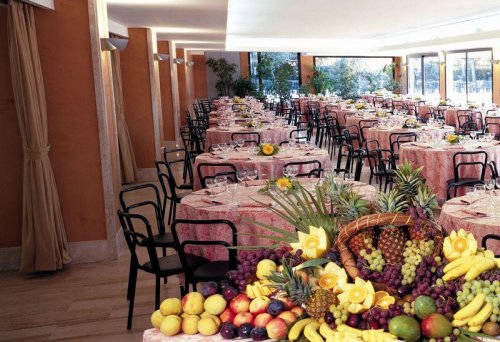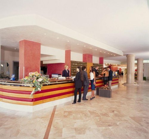 El hotel dispone de 208 habitaciones, una tienda, bares, pistas de tenis, discoteca, playa con sombrillas y tumbonas, piscina al aire libre, anfiteatro, centro bienestar a la vanguardia, 3 restaurantes, quiosco con periódicos y estanco en el interior del hotel, servicio de secretaría y aparcamiento (también custodiado).