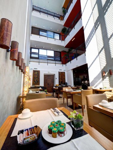 El bar, con sala de lectura y chimenea, es ideal para pasar agradables momentos de relax. La sala de desayunos, con chimenea moderna y sillas de piel, es perfecta también para snacks y comidas de negocios.