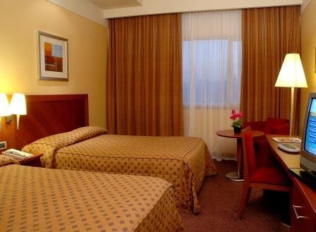 El hotel ofrece luminosas habitaciones decoradas en estilo moderno y funcional, dotadas de amplios ventanales, armario, caja fuerte, minibar, teléfono, TV en color vía satélite, TV de pago, posibilidad de conexión a Internet, radio y baño privado con bañera y secador de pelo.