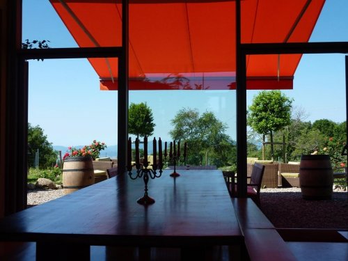 En el restaurante es posible degustar el vino de producción propia y los platos regionales preparados con ingredientes biológicos.