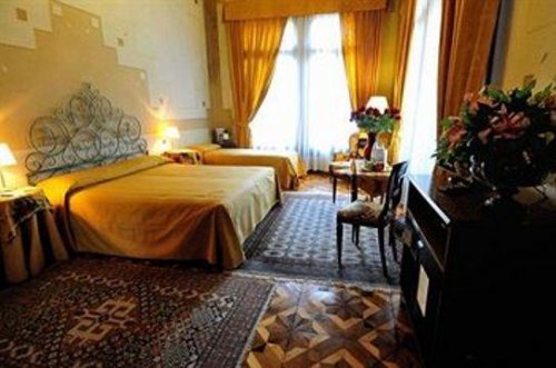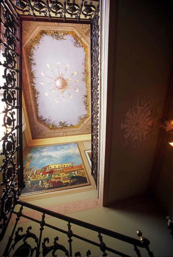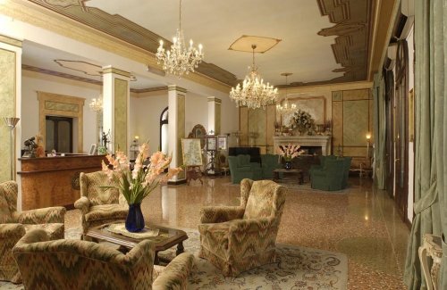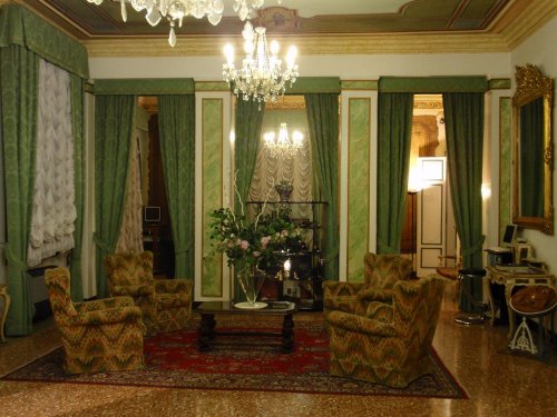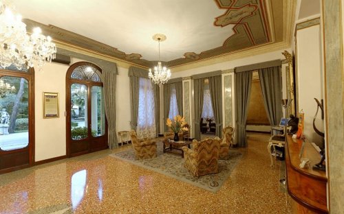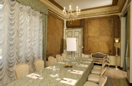 Los interiores están decorados con magníficos frescos, estucos de época, espejos de cristal de Murano, suaves cortinas y valiosos muebles de anticuario.