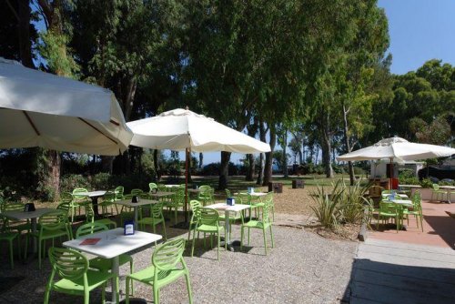 In una sala circondata dal verde dei giardini del villaggio,viene servita una piccola colazione, il pranzo e la cena con servizio a buffet. Vino della casa ed acqua in caraffa ai pasti a volontà.