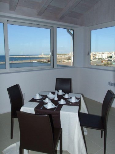 El Roof Garden del hotel, situado en una posición encantadora, es el lugar ideal para disfrutar del calor del sol matutino y el panorama de Vieste.