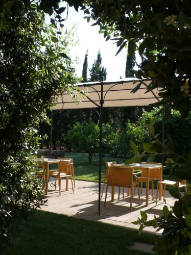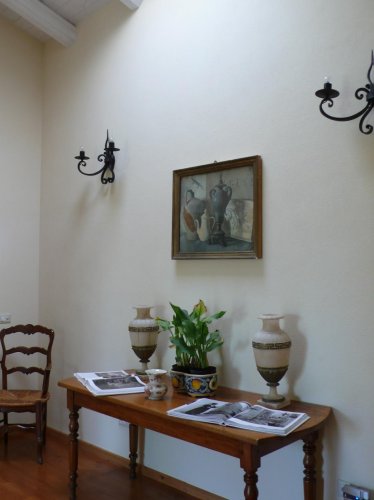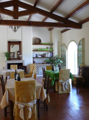 La vecchia stalla ospita attualmente una grande sala con pavimenti di cotto antico in cui vengono servite le prime colazioni del mattino; l'antico deposito degli attrezzi è stato trasformato in una Suite raffinata con patio esterno dotato di sedie e tavolino.