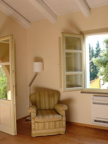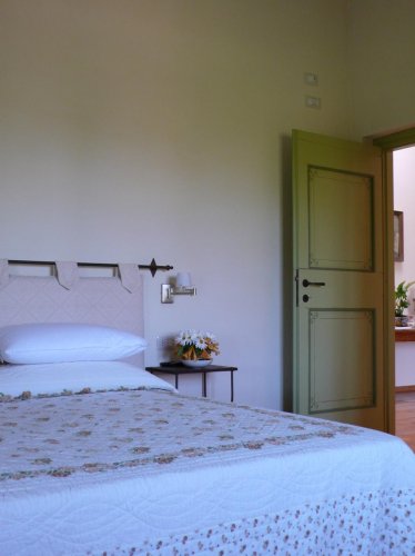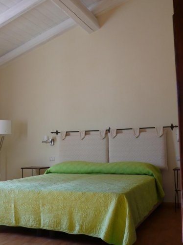 - Camera doppia Superior di 25 mq con 2 letti separati (King Size), veranda coperta di 6 mq con divano, tavolo e sedie, vista su vigneto e oliveto.