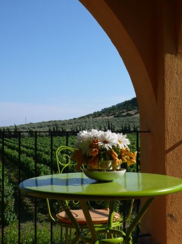 - Junior Suite di 35 mq con possibiltà letti separati + terzo letto aggiunto, composta da salottino indipendente, veranda coperta indipendente (6 mq) con sedie, tavolo e vista sul vigneto e l'oliveto.
