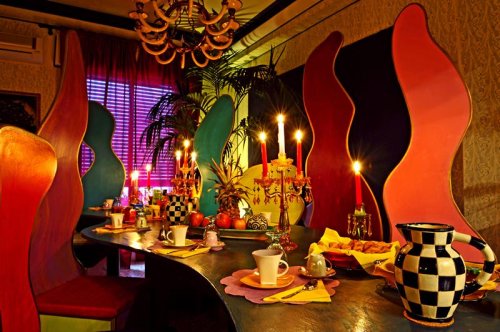 Elle dispose de chambres excentriques, chacune ayant des couleurs caractéristiques et des dessins particuliers qui les rendent uniques et inoubliables.