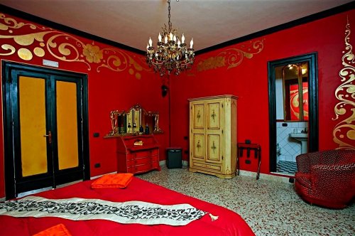 La Suite du Sultano est climatisée et dotée d'un plafond et de parois décorées avec des fresques, d'un très grand lit à baldaquin, d'un Jacuzzi, d'un grand dressing, de 2 grandes fenêtres, d'un minibar, d'une TV couleur, d'une connexion Internet sans fil, d'un stéréo avec prise pour les clés USB, Iphone et Ipod, d'un éclairage de secours, de draps en coton et d'une salle de bain privée et raffinée avec grande douche.