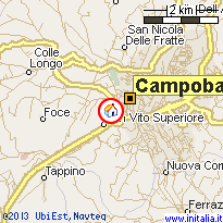 Sinon, de la Place de la Vittoria, Continuer le long de l’Avenue U. Petrella, Place Savoia, puis prendre Avenue Duca D’Aosta, tourner à gauche sur la Route Départementale “Strada Provinciale Sannitica SP53”, suivre les indications pour Colle Serano, tourner à droite, Quartier San Vito.