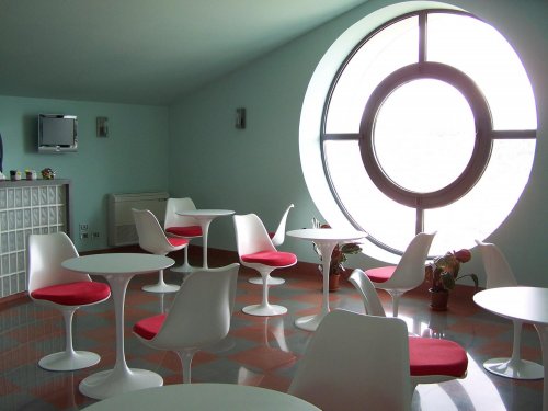 Chaque étage de l'édifice est caractérisé par des couleurs et des décorations différentes. Les chambres sont dotées d'élégantes salles de bain avec des mosaïques sur les murs.