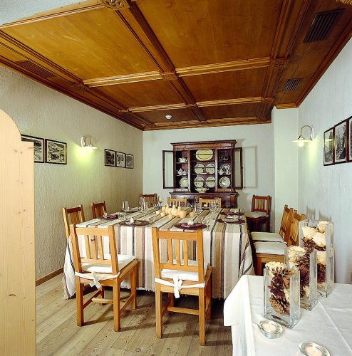 La cucina è molto curata e offre i piatti tipici regionali e internazionali. Ogni settimana è prevista una cena speciale con menù tipico valtellinese.