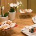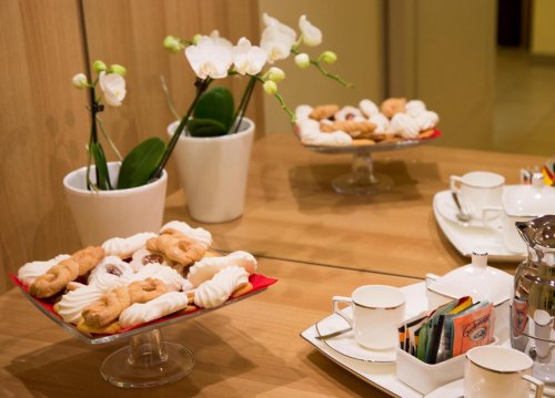 Le petit-déjeuner est servi au buffet de 7 h à 10 h dans la grande salle prévue à cet effet. Il est composé de gâteaux, de tartes, de croissants, de pâtisseries à la crème et à la pâte à tartiner, de jus de fruits frais, de yaourts, de jambon, de fromages, etc.