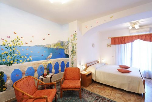 Le 6 camere di Casa Stella Marina offrono balcone o terrazzo con giardino vista mare, aria condizionata, frigobar, TV color, bagno privato in camera con doccia o vasca, in una anche idromassaggio.