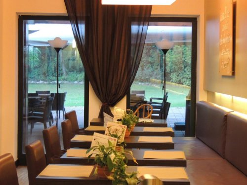 Le restaurant sert des plats traditionnels et internationaux dans une atmosphère confortable et discrète.