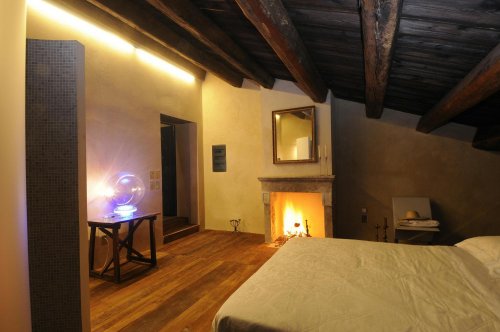 Junior suite "Segrete" è una suite con angolo relax, scalinata interna, travi a vista, panorama del lato Nord del Castello.