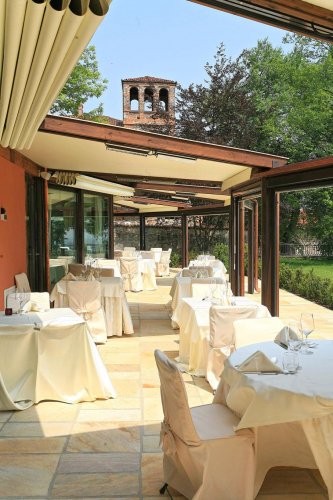 Le salon Costantia est l'endroit parfait pour des dîners importants et des réceptions jusqu'à un maximum de 100 personnes. La salle delle Rosse de style Liberty et décorée avec des fresques a une capacité d'accueil maximum de 250 personnes. Elle dispose de grandes baies vitrées avec vue panoramique.