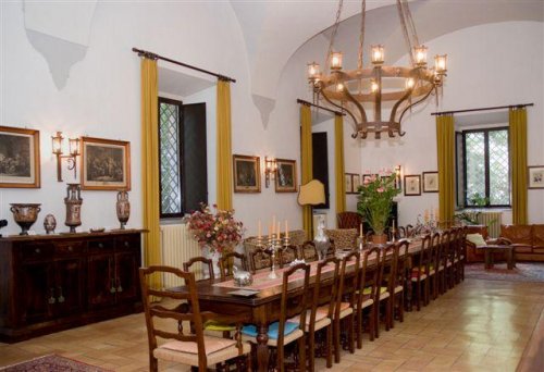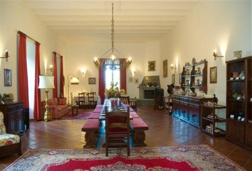 La salle de réunions et de congrès est agrémentée d’un vaste salon avec les voûtes en tuiles et les poutres en bois, le sol en céramique de Vietri avec des corniches en bois.