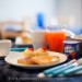 Le petit-déjeuner est servi dans la salle commune et directement en chambre pour ceux qui se lèvent tôt. Il est composé de boissons chaudes, de croissants, de biscuits, de jus de fruits, de confitures, etc.