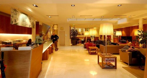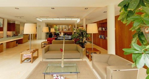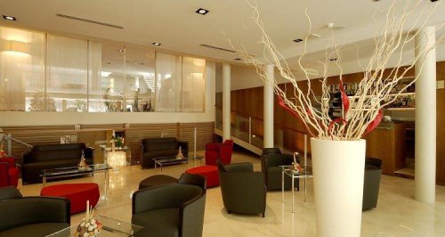Le hall moderne et à l'atmosphère familiale est mis en évidence dans un grand volume doté de prestigieuses décorations et d'oeuvres de Rossella Vasta.