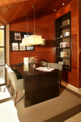 Les chambres ainsi que les espaces communs comprennent des meubles en cerisier.