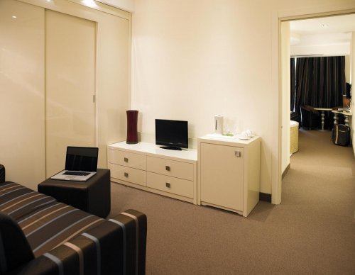 Les chambres spacieuses et aménagées avec goût sont climatisées et dotées d'une TV couleur LCD, d'un téléphone, d'un minibar, d'un coffre-fort, d'un balcon, d'une connexion sans fil (gratuite) et d'une salle de bain privée.