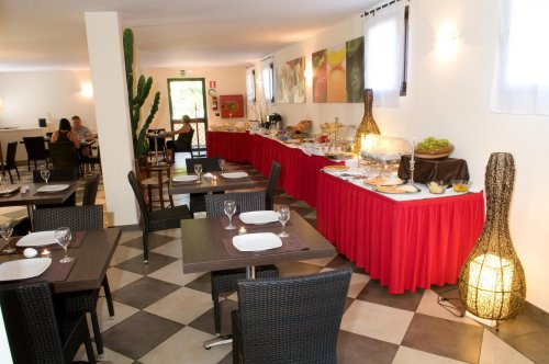 Le petit-déjeuner et le dîner sont servis dans la petite salle principale La Cantinetta ou sur la terrasse.