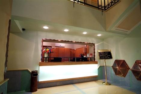 Le hall et l'entrée de cette structure hôtelière sont revêtus de marbre et de cuir. L'ascenseur extérieur est entièrement en cristal.