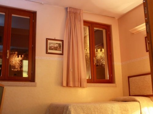 Les chambres très lumineuses donnent sur le magnifique château Bonoris ou sur la place de la bibliothèque de Montichiari.