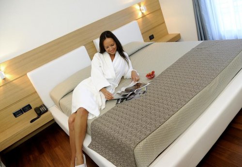 Les infrastructures comprennent également un excellent restaurant avec menu à la carte, un bar salon aménagé avec goût et doté de grandes baies vitrées, un garage, une aire de jeux pour les enfants, un Centre de Bien-être moderne avec piscine, coin massages et soins esthétiques, une borne Internet ainsi qu'un service de transfert de / pour l'aéroport et la gare (sur demande et avec supplément).