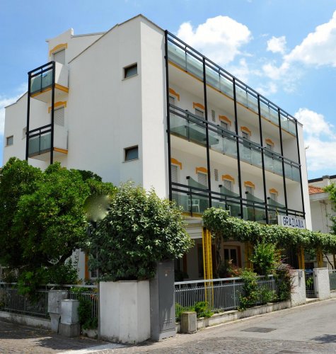 Hotel Graziana is situated in the heart of Riccione in a shady area, only 80 metres from the sea and conveniently located near the town centre, the famous Viale Ceccarini and the town's day and night time entertainment spots which characterise the Romagna Riviera. The hotel is therefore the perfect choice for fun breaks for two, family holidays or for trips with friends.