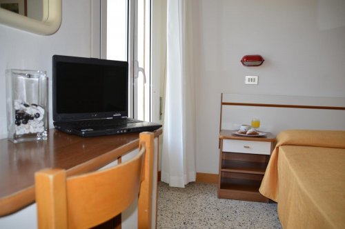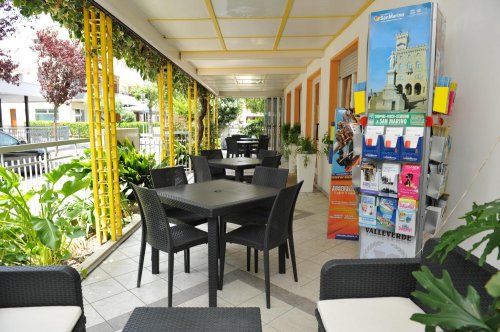 From Riccione train station either take a taxi or exit nearest the sea and walk along Viale Ceccarini until you reach the beach front. Turn left where you will find the bus station, from here take bus number 11 towards Rimini to stop 41. Turn into via Boccacio, the hotel is situated at the corner of the road on the left.