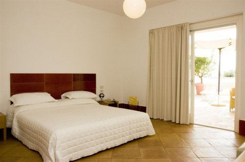 STANDARD: Double, A grand lit ou double à utilisation individuelle avec salle de bains et douche, sèche-cheveux, téléphone à ligne directe, air conditionné, mini bar, coffre-fort, TV digitale. Accès dans le jardin si l’on se trouve au rez-de-chaussée. Balcon au deuxième étage donnant latéralement sur la mer.