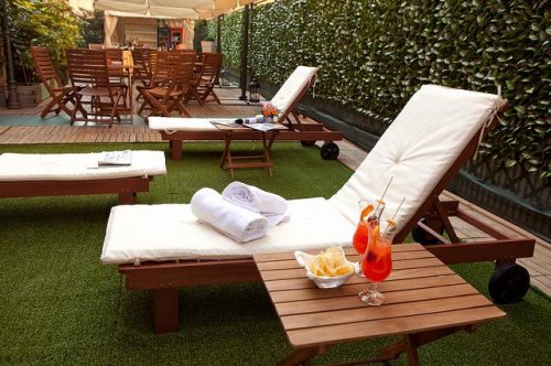 La terrasse, récemment inaugurée, ouvre uniquement en été. Elle comprend un bar à cocktails. Nos hôtes pourront se restaurer en plein air.