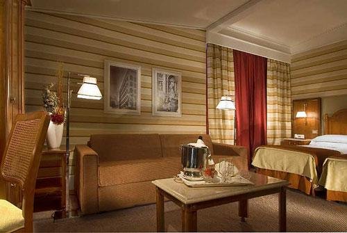 Les chambres Standard sont pourvues d’air conditionné, téléphone à ligne directe, mini-bar, TV en couleurs satellite, prise pour modem, insonorisation complète, coffre-fort, salle de bains privée avec sèche-cheveux.