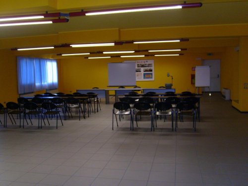 La grande salle de réunion peut accueillir jusqu'à un maximum de 100 personnes et met à disposition un rétroprojecteur, un projecteur que l'on peut relier à l'ordinateur portable, un écran et un tableau à feuilles mobiles.