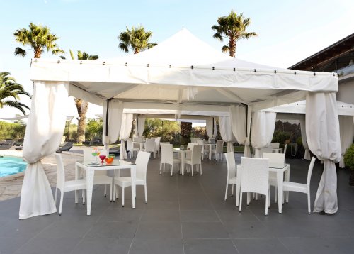 Le restaurant et la salle de banquets de la Villa Michelangelo inaugurés en 2004 proposent des plats locaux savamment préparés par le Chef.