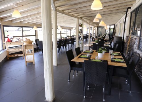 Nos hôtes disposeront d'une salle de restaurant de 50 places et d'une terrasse avec vue à couper le souffle sur le volcan.