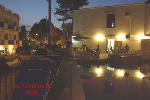 L'Hotel Pineta se trouve aux pieds de la forêt Marzini à seulement 200 m de la mer. Cet hôtel est composé de deux bâtiments situés à 10 m l'un de l'autre, d'une structure récréative – sportive, le Marzini Club, avec piste de danse, court de tennis, baby-foot, terrain de pétanque et patinoire, d'un grand parking ainsi que d'un ascenseur. Il a des tarifs préférentiels avec une plage privée et une piscine où les hôtes pourront se rendre sans problèmes.