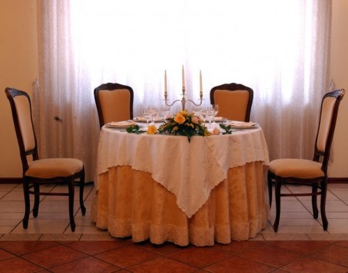 L'ambiente interno è costituito da sale eleganti, arricchite da stoffe pregiate, mobili e rifiniture in legno, tenui tonalità alle pareti.