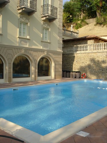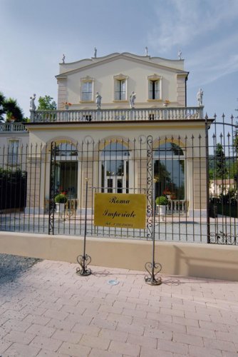 L'Hôtel Roma Imperiale de Acqui Terme, a été complètement restauré en 2005, et ramené aux anciennes splendeurs grâce à une sage et attentive recherche du détail. L’hôtel, enrichi par des décors en stuc vénitiens, marbres de toutes les couleurs et provenance, une piscine externe chauffée, immergée dans la verdure du parc séculaire et réparée par les arbres, éloge un Centre de bien-être moderne et innovateur, où une vaste gamme de traitements consacrés surtout à l’Ayurveda et à l'Holistique, vous feront redécouvrir des sensations cachées et régénératrices pour le corps et l’esprit.