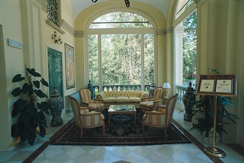 Les décors élégants en style classique, les plafonds avec les poutres en bois et décors stuqués en plâtre, les sols en marbre, donnent de la valeur et une exclusivité aux vastes salles lumineuses.