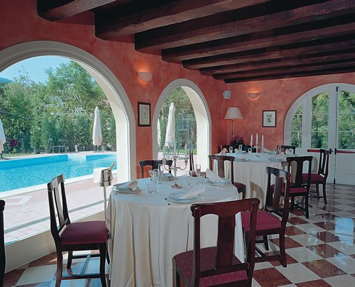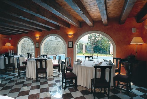 Le Restaurant de l’hôtel se trouve au rez-de-chaussée et dispose de 3 salles pouvant être reliées et distinctes d’où l’on peut jouir d’une vue agréable sur le parc et sur la piscine; décoré par des plafonds stuqués, à poutres en bois ou par une voûte en berceau et une cheminée en marbre, il représente une agréable solution pour les soirées importantes, les banquets, les dîners romantiques ou de travail ou de loisir. Il peut accueillir jusqu’à 150 places assises.