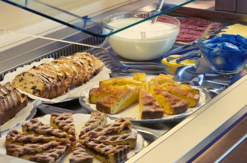 Le copieux petit-déjeuner est servi au buffet de 7 h à 10 h. Il est composé de nombreux produits sucrés-salés, d'un grand choix de gâteaux faits maison, de charcuterie, de fromages, de fruits frais, de yaourts, de jus de fruits, de céréales et de confitures.