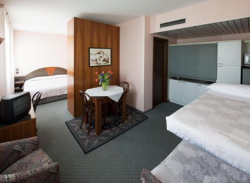 Cette structure hôtelière dispose d'une connexion Internet sans fil, d'une terrasse solarium, d'un service de transfert et d'un parking privé. Nos hôtes pourront se faire prodiguer des soins thermaux directement dans l'hôtel.