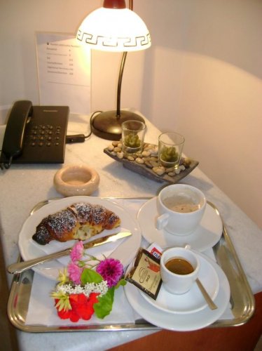 Le copieux petit-déjeuner continental et à l'italienne est servi au buffet de 7 h 30 à 10 h dans la petite salle prévue à cet effet. En accord avec la réception, il sera possible de le prendre plus tôt.